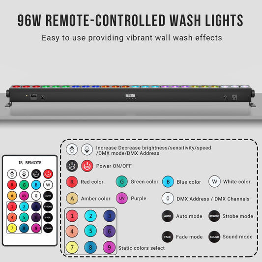 LaluceNatz 40 inch 24LED RGBWAUV 6in1 LED Wall Wash Light Bar with Remote, Free shipping to US