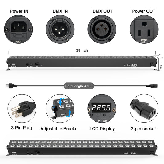 48LED RGBA 4in1 Indoor Wall Washer Light Bar